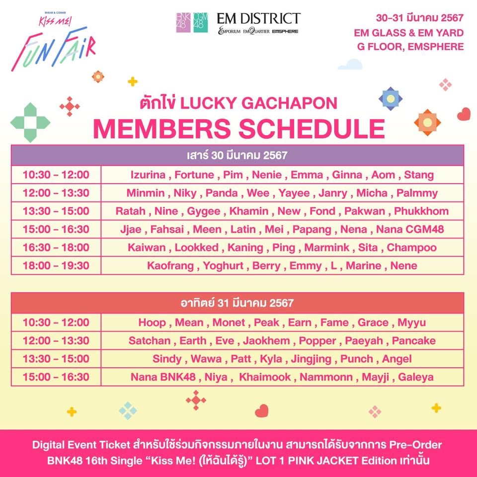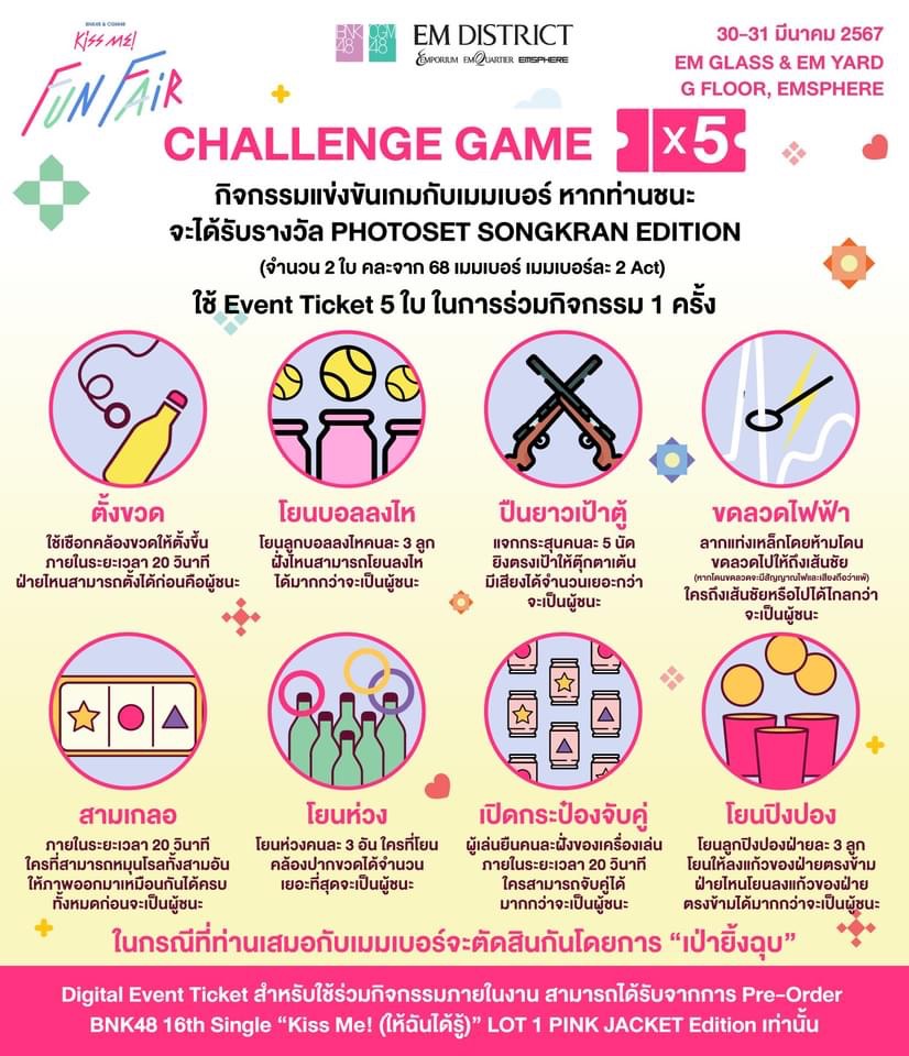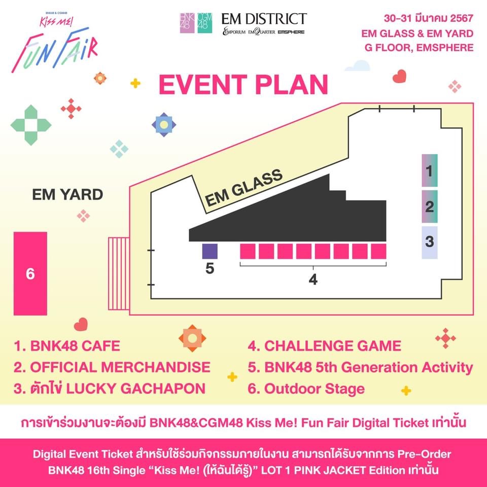 กิจกรรมทั้งหมดจะเข้าร่วมได้ด้วย Digital Event Ticket สำหรับงาน BNK48 & CGM48 “Kiss Me!” Fun Fair เท่านั้น