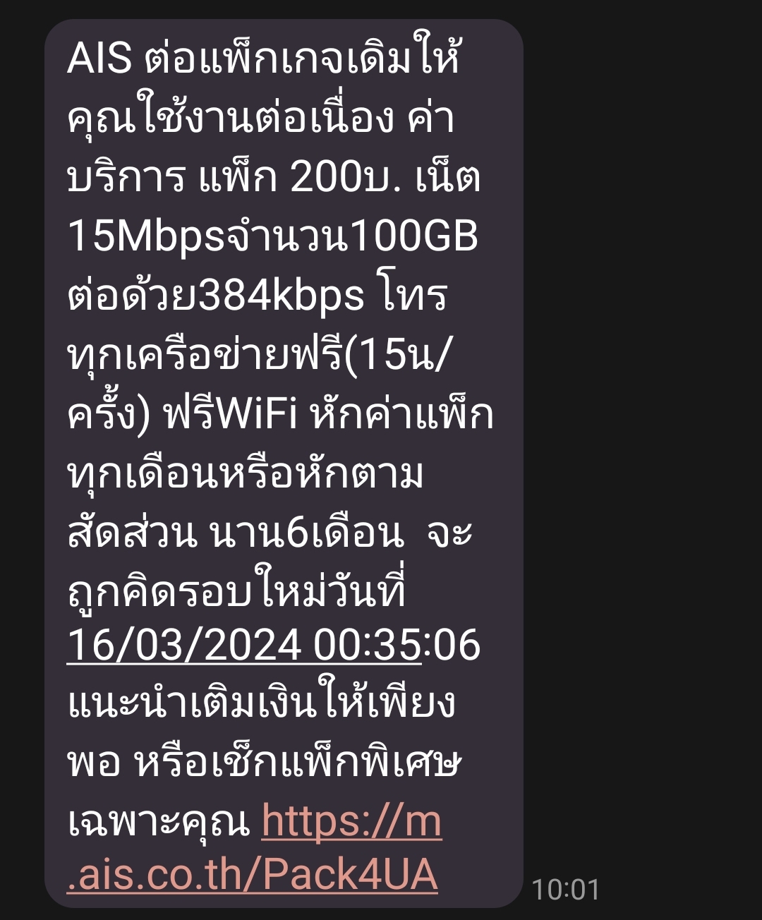 AIS ไม่หักเงินค่าเน็ตรายเดือน