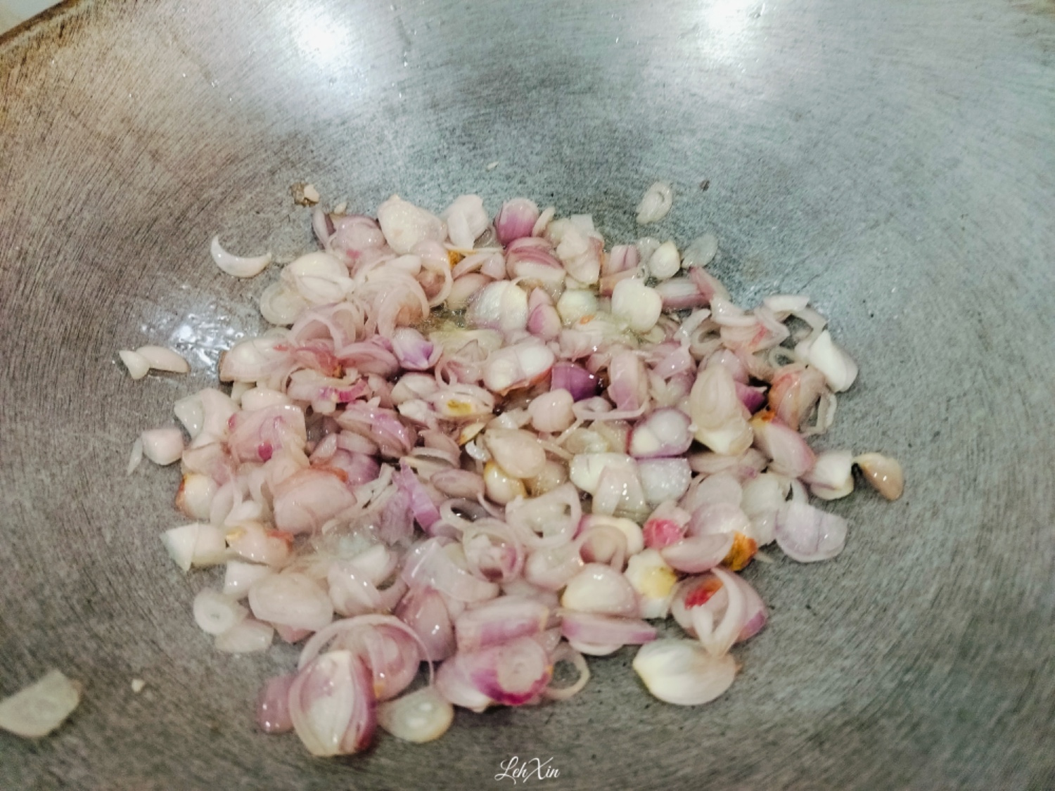 ปอกเปลือกหอมแดง ซอยเป็นชิ้นเล็กๆ