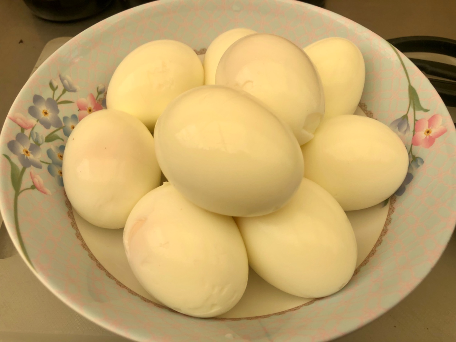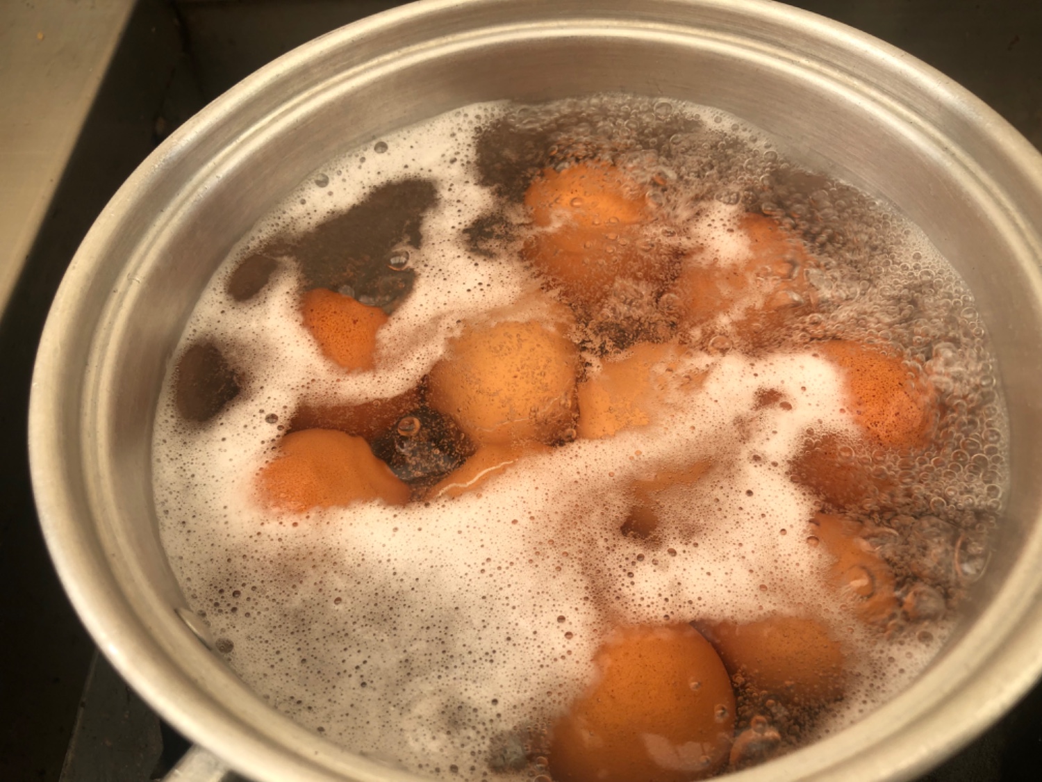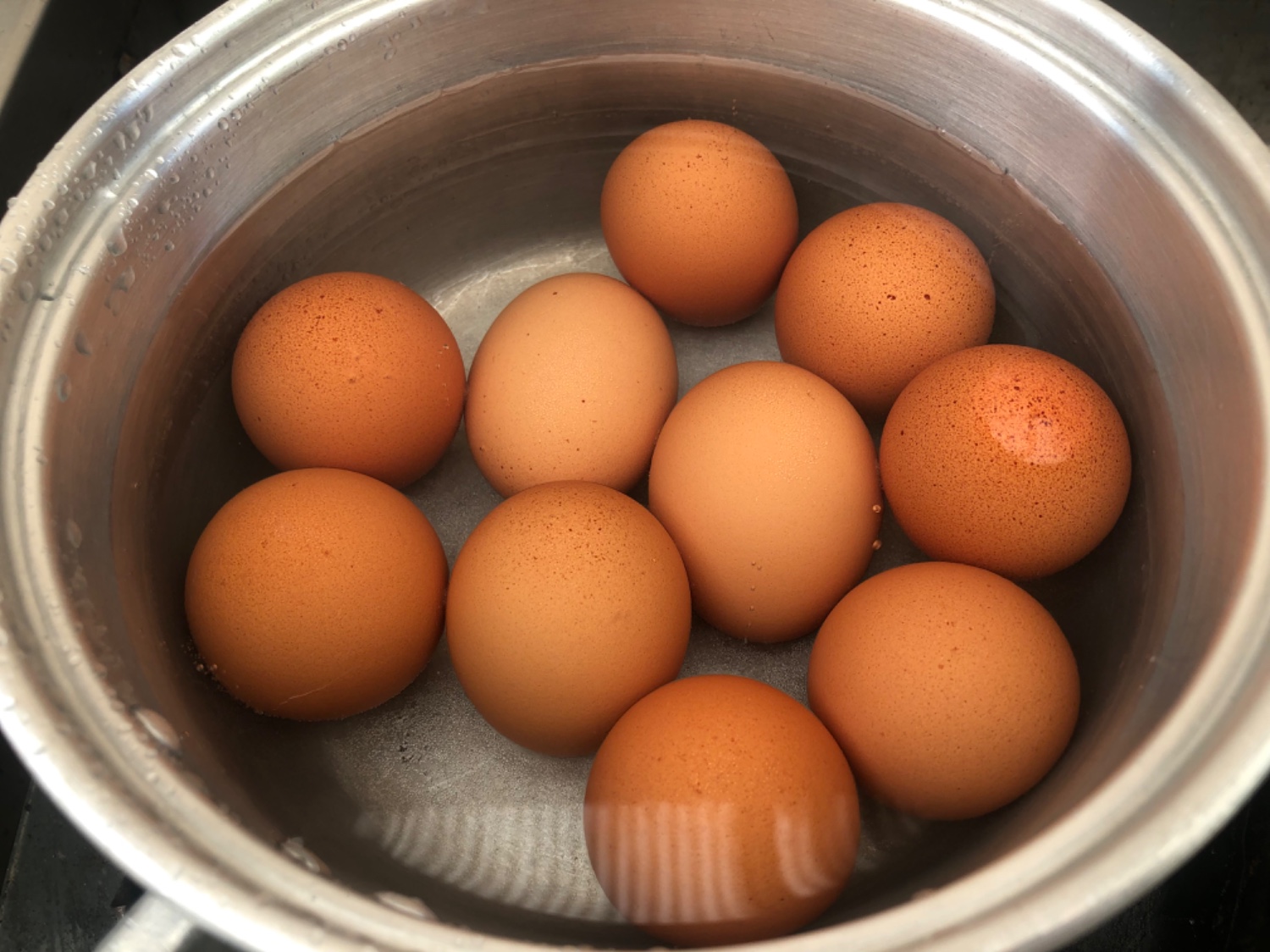 ต้มไข่ใส่เกลือ ไปเลย 10 นาที พอน้ำเดือดอย่าลืมลดไฟ เดี๋ยวไข่แตก เสร็จแล้ววางแช่นำ้ร้อนไว้ก่อนซักพัก ค่อยแกะ