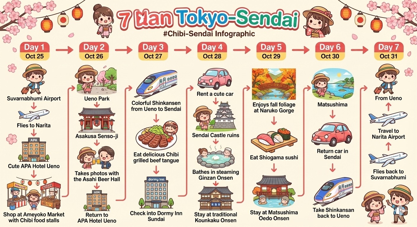 ปี2568 ตุลาคม โตเกียว อุเอโนะ เซนได ใบไม้เปลี่ยนสี