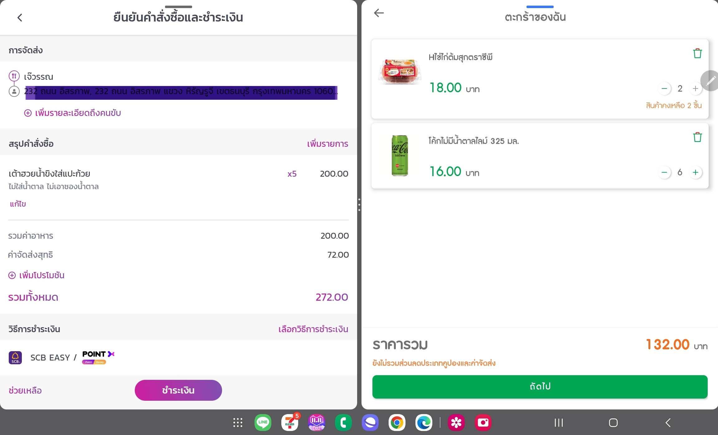 🫤🫤🫤🫤..๙ แล้ว ๖ ๖ แล้ว ๙ ..ลองใช้แท็บเล็ตสั่งของกินจากสองแอพฯ พร้อมกัน ...🙃🙃🙃🙃