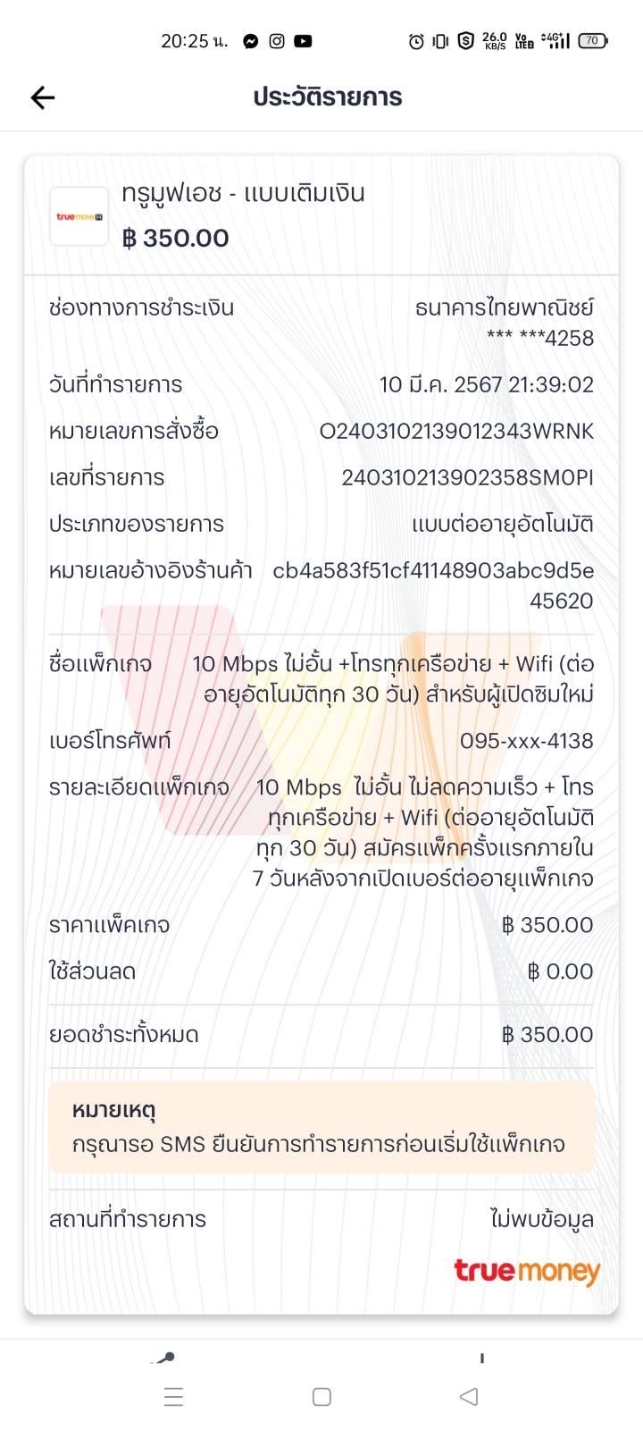 แล้วเมื่อวานวันที่ 10 ก็ยังคงหักเหมือนเดิม รายการเดิม คือเน็ต รายเดือน 10 mbs 30 วัน อยากทราบว่าเกิดจากอะไรครับ