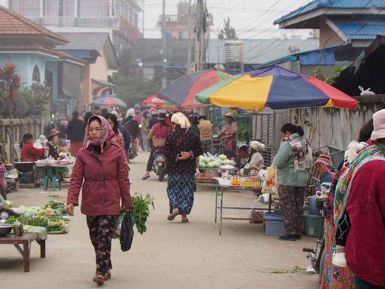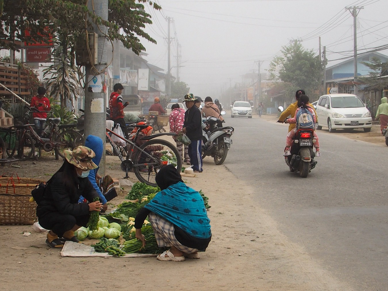 ตลาดเช้านี้ หมอกลง อากาศเย็นมาก ผมว่า น่าจะ 10 องศานิดๆ