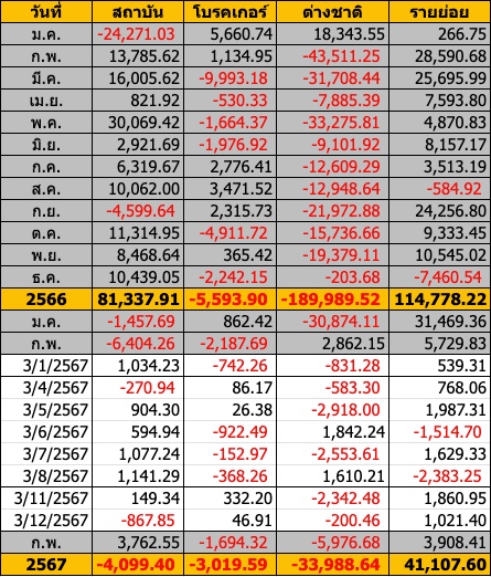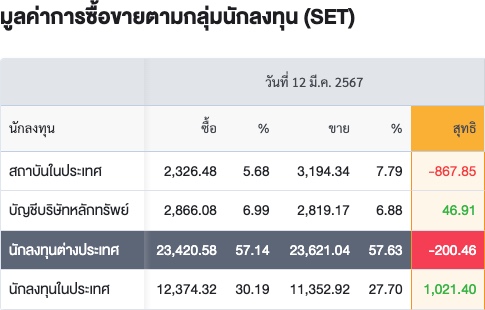 Sinthorn Summary 12/3/2567 : ต่างชาติขายสุทธิ -200.46 ลบ.