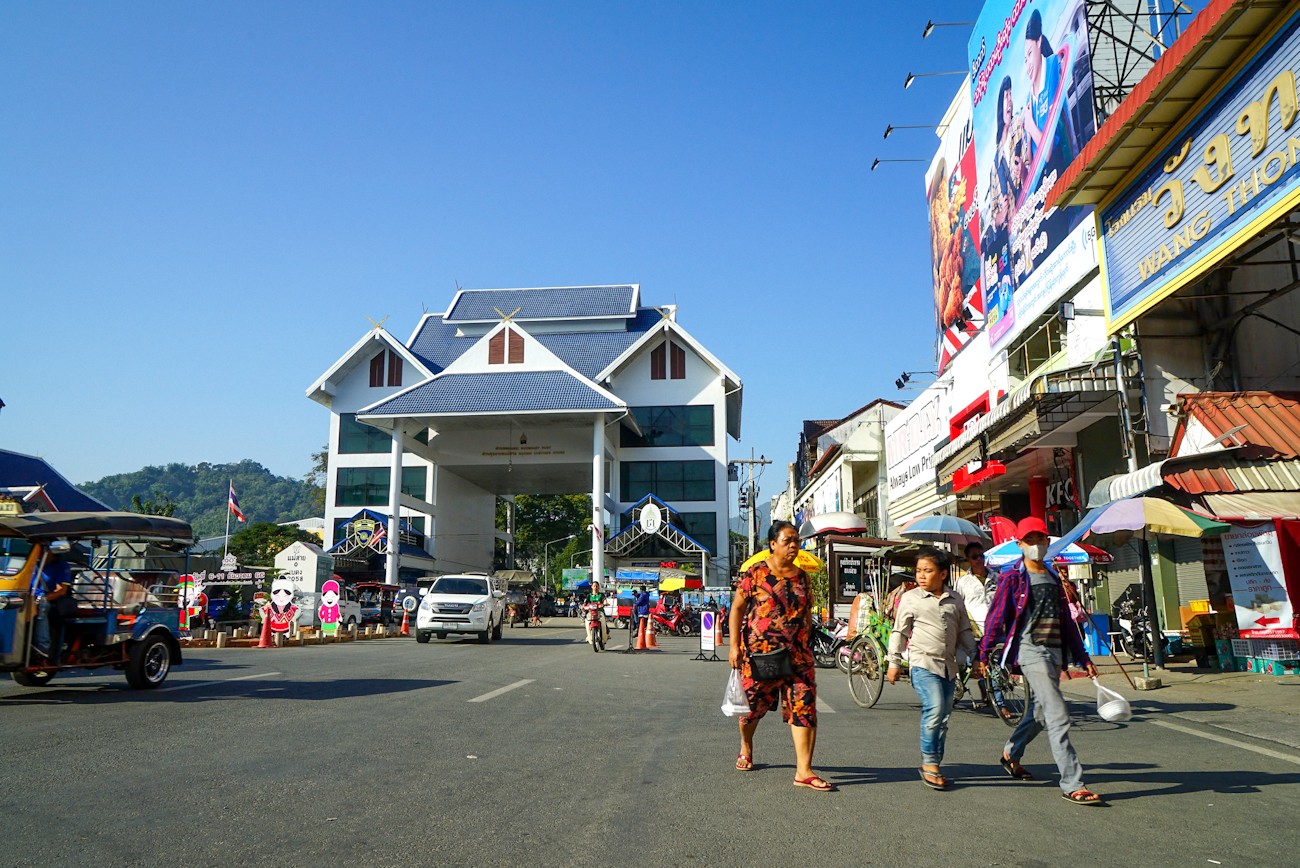 บรรยากาศหน้าด่าน อำเภอแม่สาย จังหวัดเชียงราย เหนือสุดแดนสยาม ชายแดนติดกับท่าขี้เหล็ก ประเทศพม่า