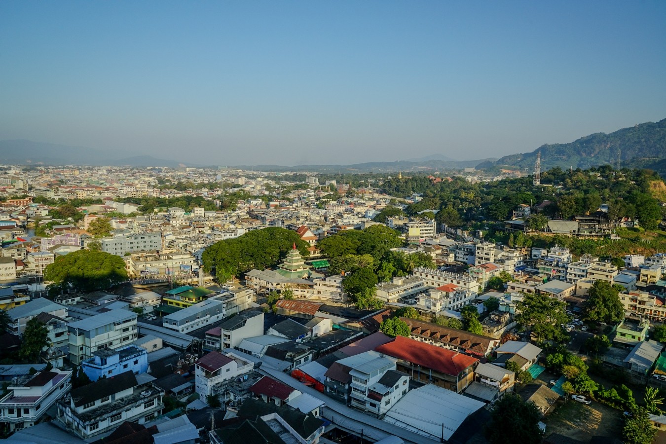 พอดีผมมีเวลาเหลือก่อนที่ฟ้าจะมืด ผมเลยออกมาเดินเล่นที่วัดพระธาตุดอยเวา มีสกายวอร์คชมวิวเมืองฝั่งท่าขี้เหล็ก ค่าเข้า 50 บาท