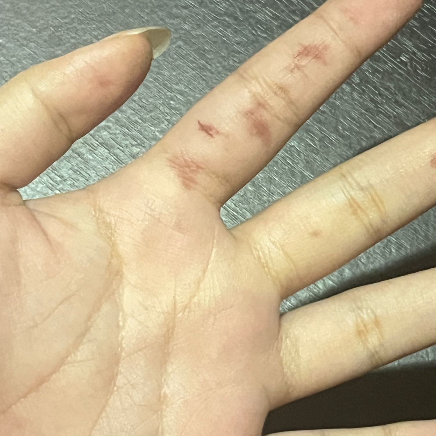 คือเราตื่นนอนมาก็รู้สึกคันยุบยิบที่มือก่อนอ่ะค่ะแล้วมันก็ค่อยคันตามร่างกายเราก็เลยคิดว่าอาบน้ำเดี๋ยวก็หายพออาบเสร็จเราจะทาครีมก็รู้สึก แสบอ่ะค่ะคันตามแขนตามขาโดยเฉพาะก็ฝ่าเท้าและก็มือมันคันแบบยุบยิบ