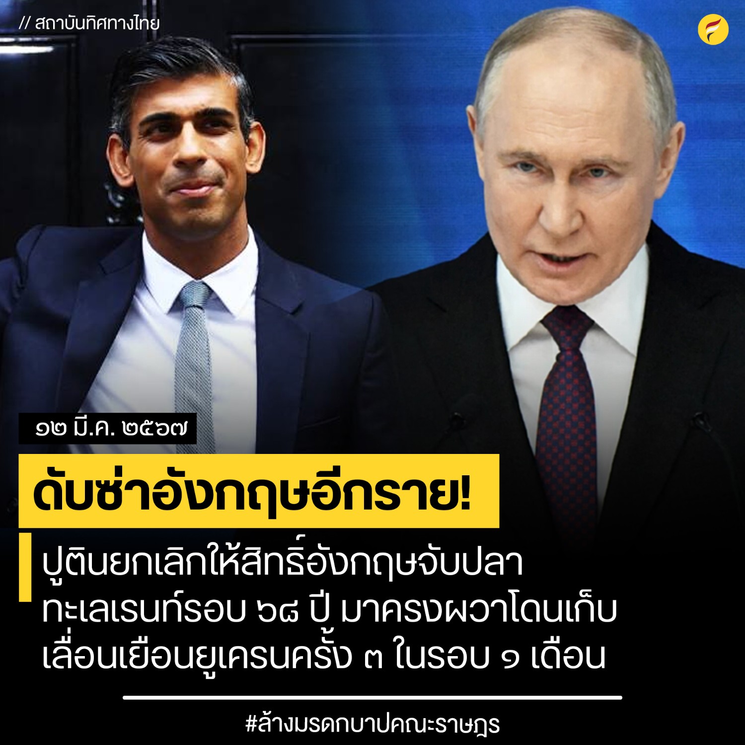 ดับซ่าอังกฤษอีกราย! ผู้นำปูติน สัง่รัฐบาลรัสเซียยกเลิกให้สิทธิ์อังกฤษ จับปลาทะเลเรนท์รอบ 68 ปี