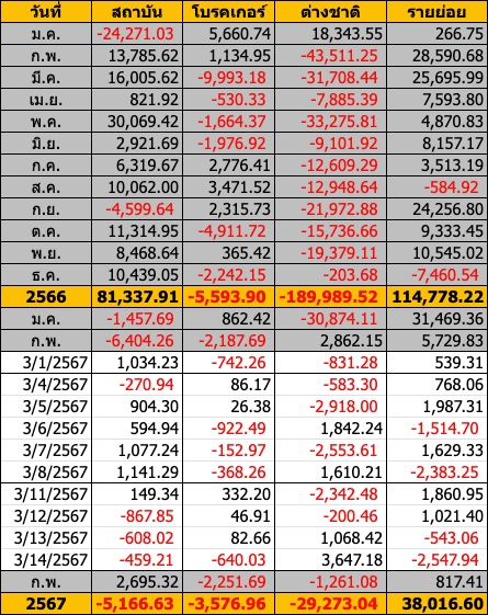Sinthorn Summary 14/3/2567 : ต่างชาติซื้อสุทธิ 3,647.18 ลบ.