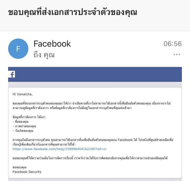 หลังจากที่หนูตั้งกระทู้ก่อนไปเกี่ยวกับ Facebook lock และคนรับ Unlock วันนี้เมลเขาแจ้งมาแบบนี้ค่ะ