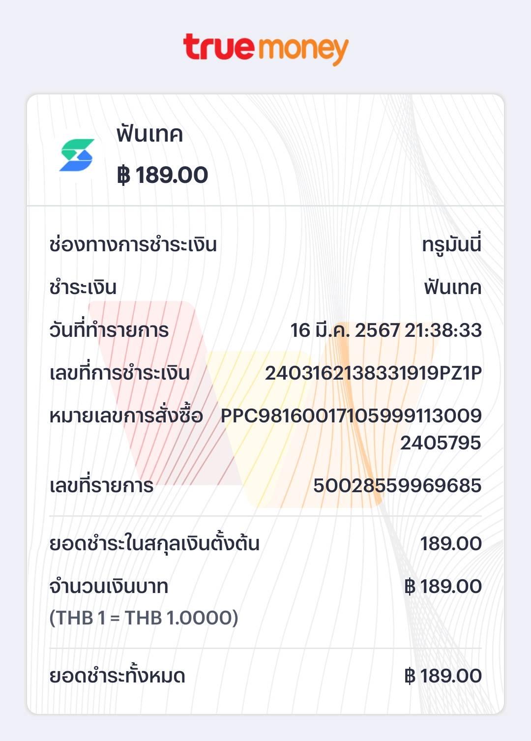 True wallet โดนหักค่า ฟันเทค โดยไม่ทราบสาเหตุ