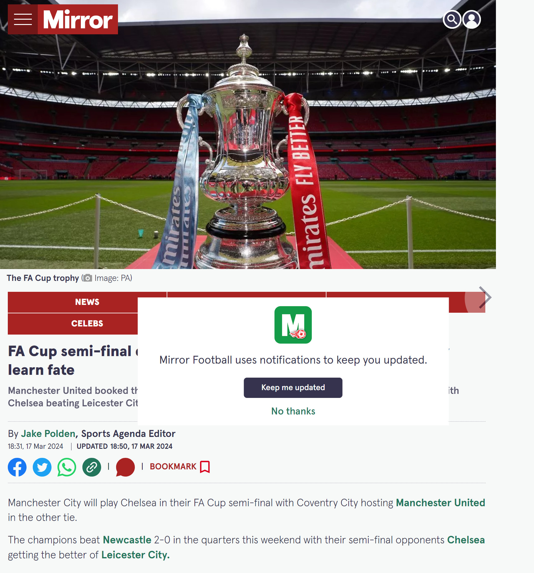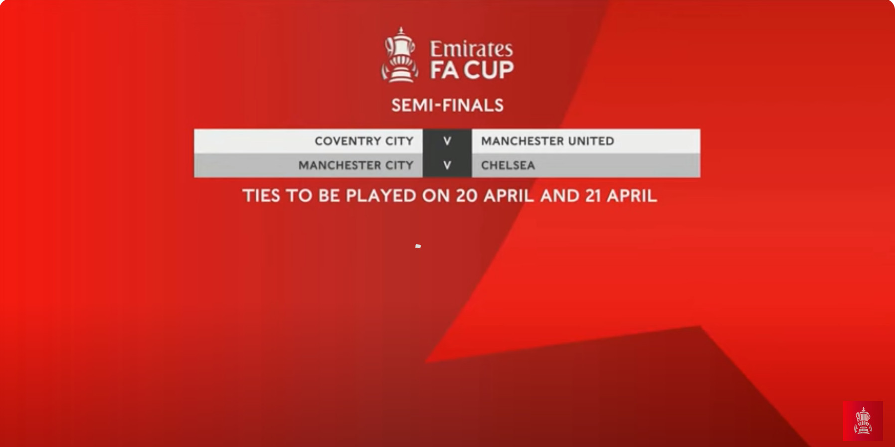 ผมจำฉลากออกมาแล้วครับ FA Cup semi-final draw: Millwall/Blackburn v Wigan; Man Utd/Chelsea v Man City