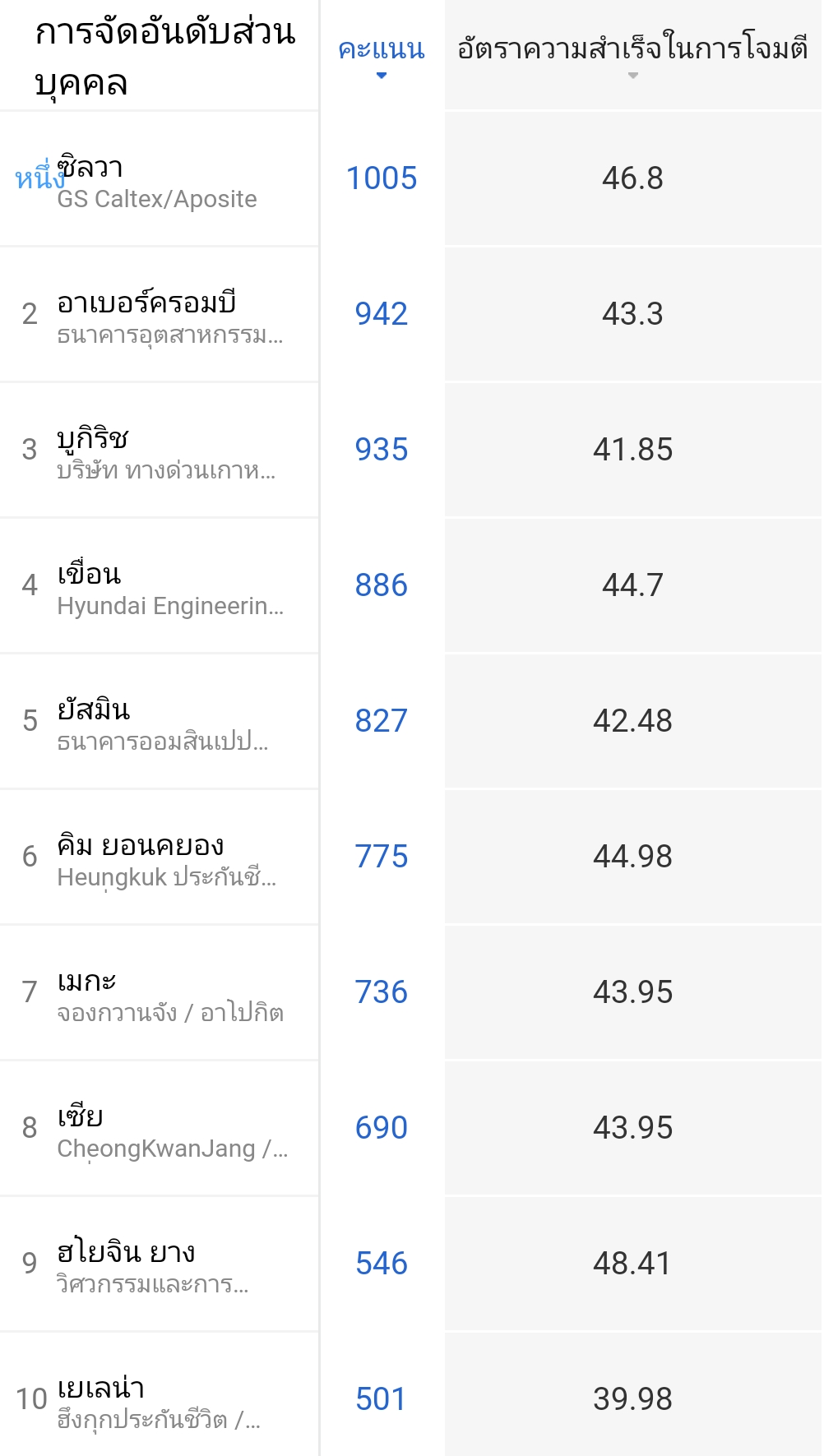 ตารางอันดับคะแนนและสถิติส่วนบุคคลหลังจบฤดูกาลปกติ😍😍😍😍