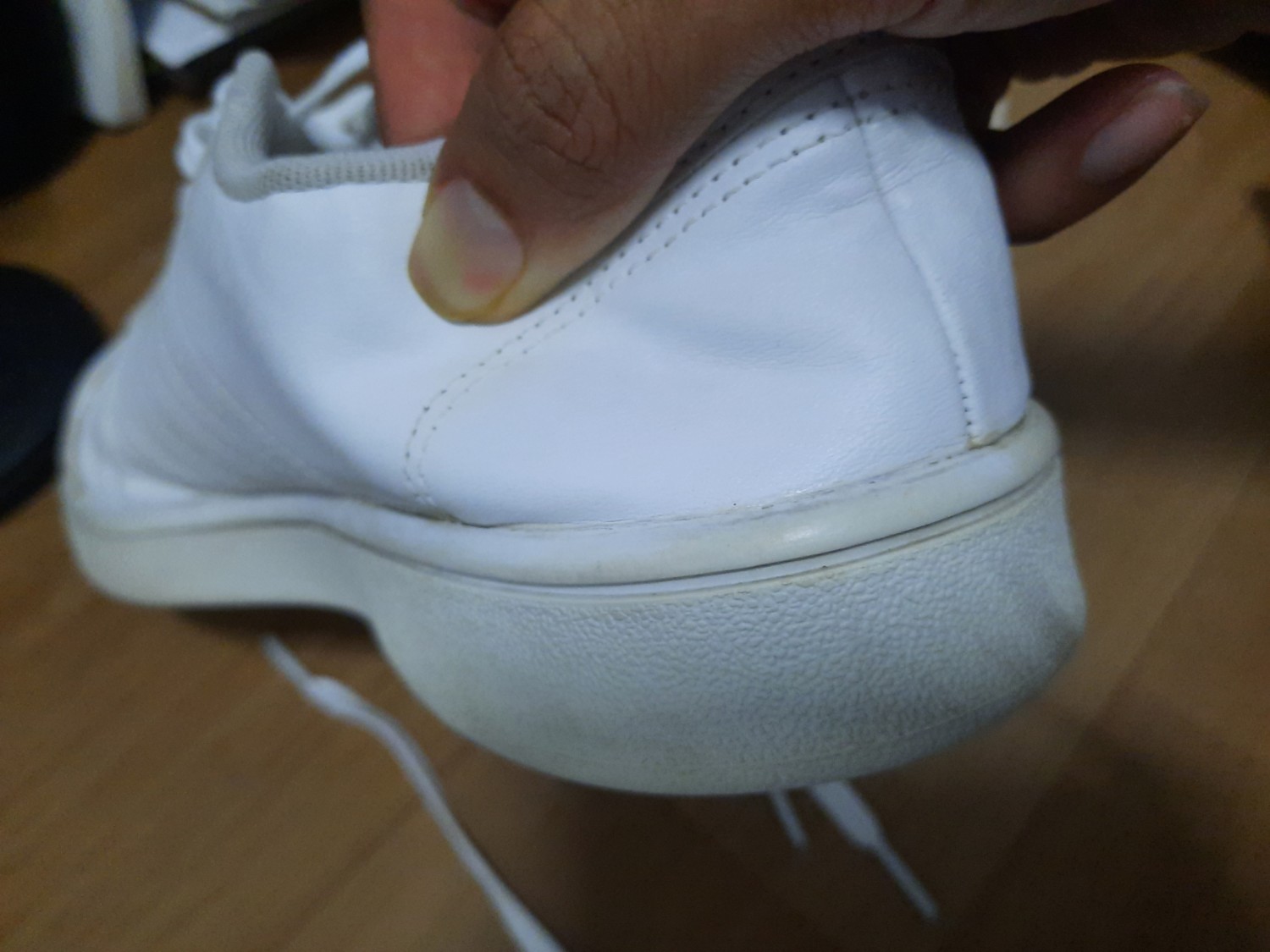 คือเราซื้อรองเท้าจากร้านนั้นมาหารกันกับเพื่อนแล้วเราใส่ไปประมาณ 2 ครั้งแล้วมันก็เริ่มลอก คือรองเท้าเราคือ converseข้อยาวสีดำ แล้วป้ายด้านหลังลอกเยอะมาก แล้วเราก็ไม่ใส่อีกเลยกลัวคนทักว่าของปลอมด้วยอ่ะ