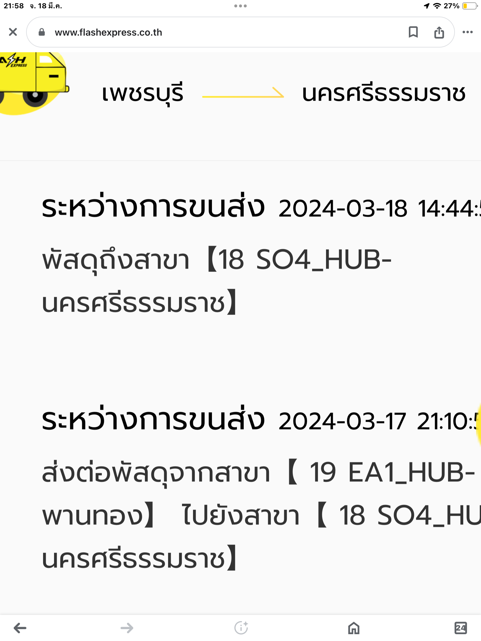 Flash express ค้างของไว้ที่ขอนเเก่นตั้งเเต่ตี4 ตอนนี้ยังไม่เขยื้นเลยคับ ของที่ส่งช้ากว่ากลับถึงจุดหมายก่อน