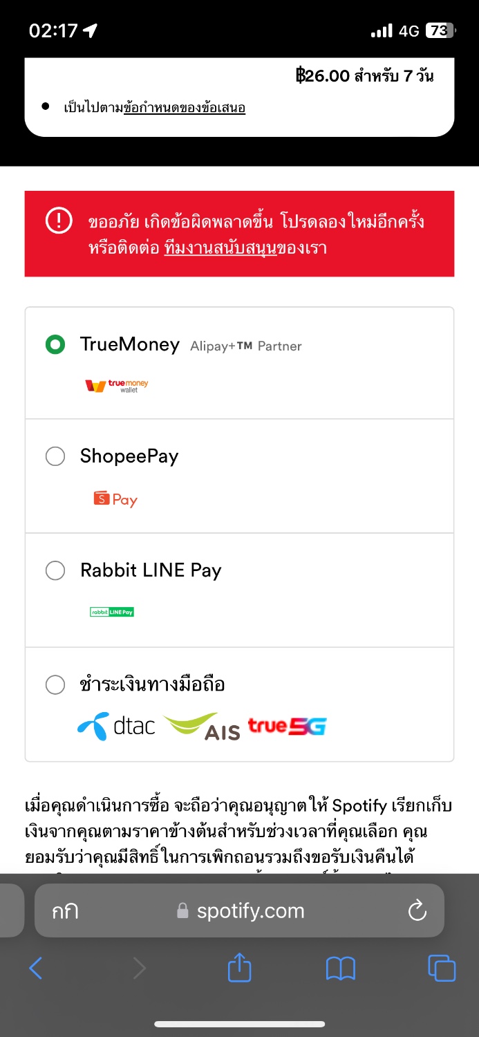 Spotify จ่ายเงินไม่ได้