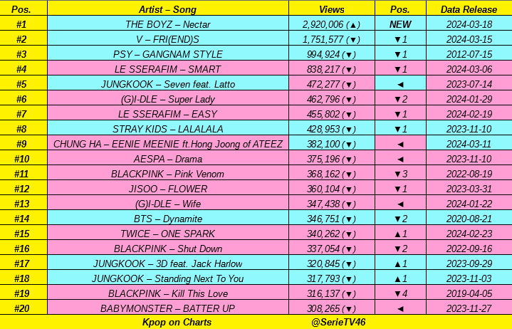 🔥 Top 20 most views Kpop Acts MV in LAST 24 hours: