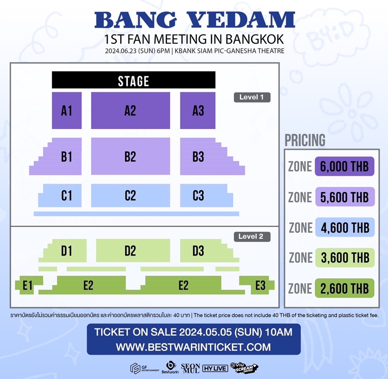 ปักหมุดรอได้เลยสำหรับงาน "BANG AM" 1st Fan Meeting In Bangkok ที่จะจัดขึ้นในวันอาทิตย์ที่ 23 มิถุนายน 2567 ณ โรงละครเคแบงก์สยามพิฆเนศ เปิดจำหน่ายบัตรวันเสาร์ที่ 5 พฤษภาคม 2567 เวลา 10.00 น. ทาง www.BESTWARINTIKET.com ราคาบัตร 6,000 / 5,600 / 4,600 / 3,600 / 2,600 บาท พร้อมสิทธิ์ HI-TOUCH กับ "บังเยดัม" ทุกที่นั่งแน่นอน