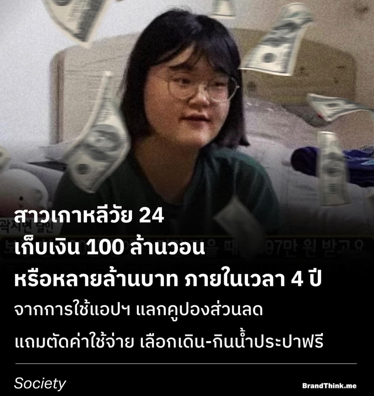 กำลังเป็นประเด็นที่ถูกพูดถึงบนโลกโซเชียลมีเดียของเกาหลีใต้ เมื่อเรื่องราวของหญิงสาววัยเพียง 24 ปี ถูกเผยแพร่ออกมา ว่าเธอนั้นสามารถประหยัดเงินได้มากถึง 100 ล้านวอน (หรือประมาณ 2,694,000 บาท) ภายในระยะเวลาเพียงแค่ 4 ปี