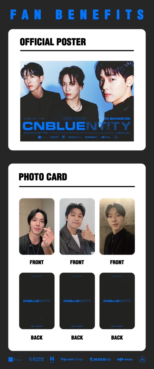 “2024 CNBLUE LIVE 'CNBLUENTITY' IN ASIA” ที่เหล่าด้อม BOICE ตั้งตารอคอยที่จะจัดขึ้นในวันเสาร์ ที่ 23 มีนาคม 2567 นี้ เวลา 19.00 น. ณ Hall ศูนย์การค้า Union Mall กรุงเทพฯ งานนี้ทั้ง 3 หนุ่มพร้อมแล้วกับทุกโชว์ ทุกเซอร์ไพรส์ ซึ่งสำหรับผู้ที่ซื้อบัตรจะได้รับออฟฟิเชียลโปสเตอร์และโฟโต้การ์ดแบบสุ่มทุกท่าน และยังมีสิทธิพิเศษอีกมากมายมาฝากกันแบบจุกๆ
