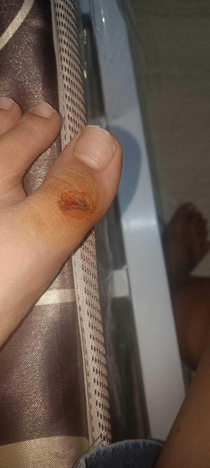 คือเราเตะโต๊ะแล้วเล็บหลุดออกมาค่ะ เล็บเท้านิ้วโป้ง วันแรกเราไปล้างแผลที่อนามัยค่ะ จนวันต่อมาเราไปล้างอีกรอบ หมอดึงผ้าก๊อซออกค่ะ แล้วล้างแผลให้เรา เราก็มีอาการ มือชาตัวสั่นค่ะ จะวูบตลอดเวลา เราไม่รู้สึ