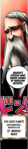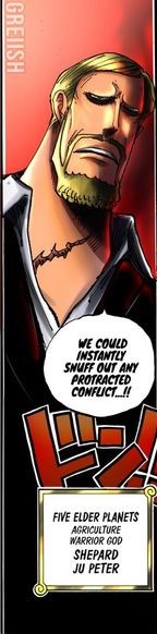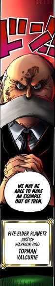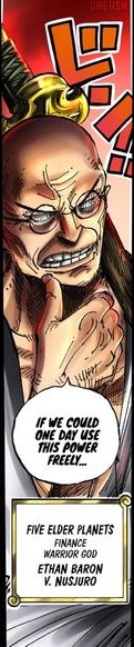 มาดูแผนผังขั้วอำนาจของโลกวันพีชกันก่อน เรียงต่ำไปสูง 1.ทาส 2.ประชาชน 3.คนรวย 4.รัฐบาล 5.ราชา 6.มังกรฟ้า 7.โกโรเซ(ชื่อเรียกกลุ่มห้าผู้เฒ่า)8.ท่านอิม ภาษาอังกฤษอ่านว่า อิมุ เนื้อเรื้องในตอนนี้มีอ