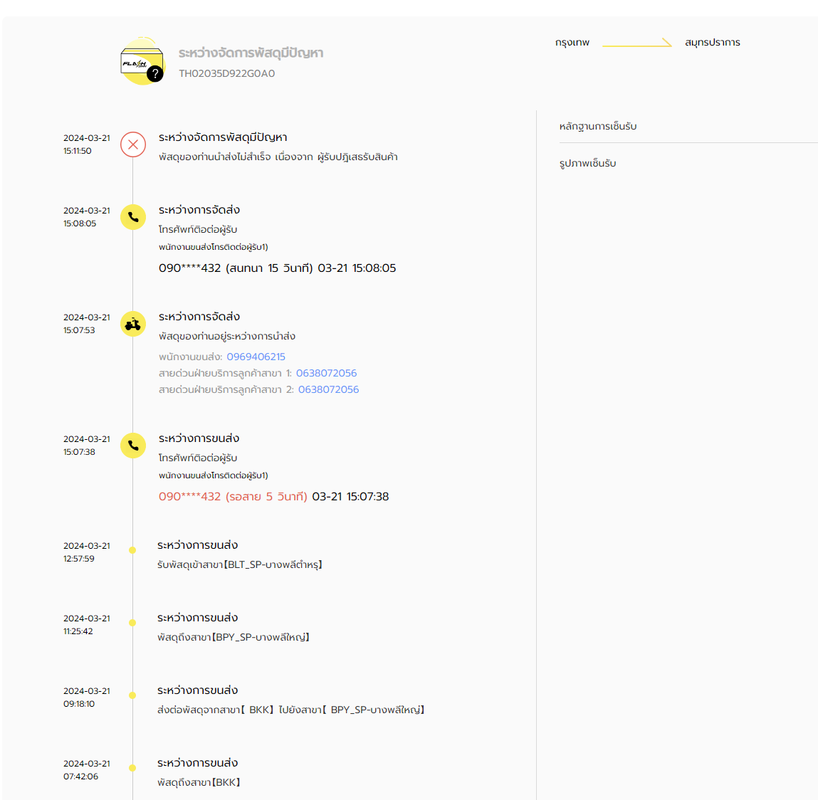 จากการเช็คในระบบ ขึ้นตามแบบนี้ รู้สึกไม่โอเคอย่างแรง ทั้งๆที่เราไม่ได้รับสาย และไม่มีสายโทรมาเลย แต่ในระบบ กลับบอกว่าโทรมาแล้ว และมีคนรับ และปฏิเสธของ เกือบทุกครั้งเจอบ่อยๆมากๆ มีวิธีแก้ไขยังไงได้บ้างครับ แล้วของจะยังได้รับอยู่ไหมครับหรือว่าตีกลับไปถึง ต่างประเทศ เพราะเป็นของที่เคลมมาจากต่างประเทศครับ ใครมีปัญหารบกวนช่วยด้วยนะครับ เดือดร้อนจริงๆ