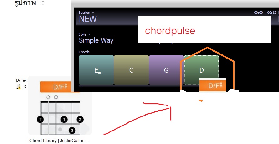 โปรแกรม chord pulse มีตัวเลือกการตังค่า เล่น chord d เเต่ ใช้ เบส F# ไหมครับ