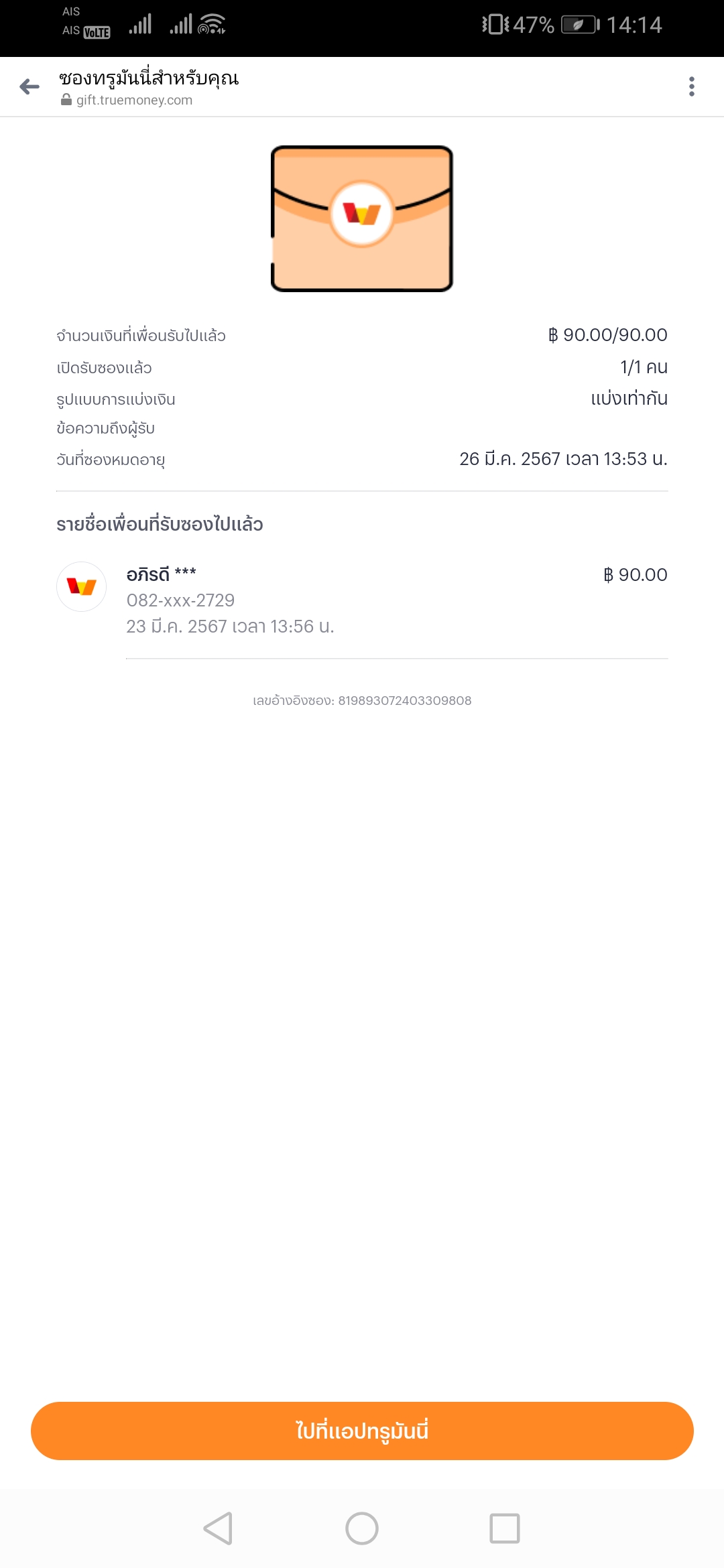 truemoney เวอร์ชั่นล่าสุดทำซองอั่งเปายังไงครับ