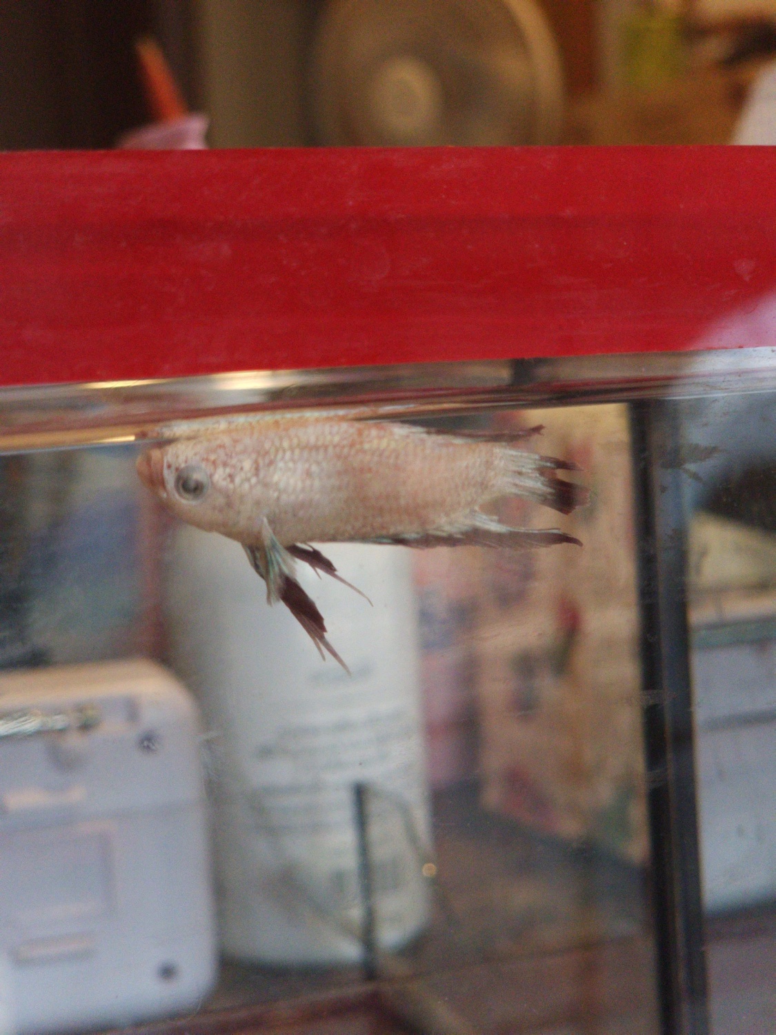 สวัสดีค่ะ เราซื้อปลาสอดหางบ่วงสีขาว1ตัวมาจากร้านขายปลาร้านหนึ่ง น้องตัวสดใสร่าเริงปกติดีนะคะ ไม่มีบาดแผลอะไร ไม่ป่วย ครีบไม่เปื่อย แต่จะมีหางบิ่นไปนิดนึง แต่หางไม่ได้เปื่อยนะคะ น้องก็แข็งแรงดีค่ะ ด้