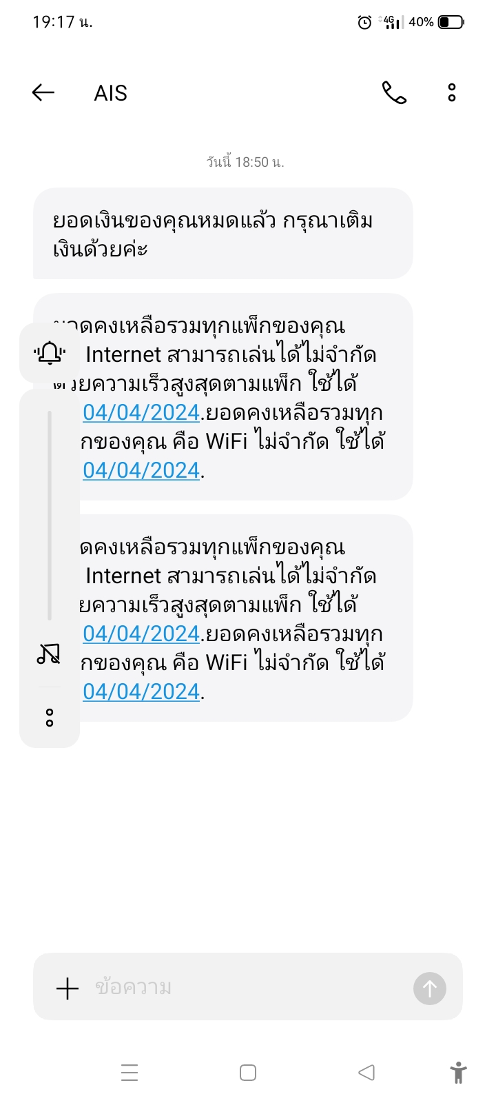 เราเริ่มไม่โอเคกับ ais เน็ตช้า หักค่าบริการทีละครึ่ง ทั้งๆที่เติมเงินไปครบทุกบาท พอโทรไปถาม บอกเราเติมเงินไม่พอ พอบอกว่าเราเติมเกินด้วยซ้ำ บอกขอตรวจสอบ พอตรวจสอบเสร็จบอกหักค่าบริการโทร หักทั้งๆที่เราใ