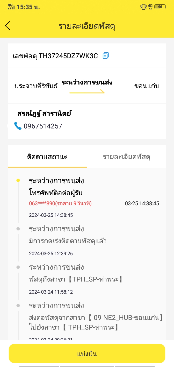 ทำไมแฟลชถึงไม่ขึ้นว่า ระหว่างจัดส่งก่อนแล้วจะมีเบอร์พนักงาน แต่ในรูปไม่มีเบอร์พนักงานแต่โทรมาจากไหนไม่รู้