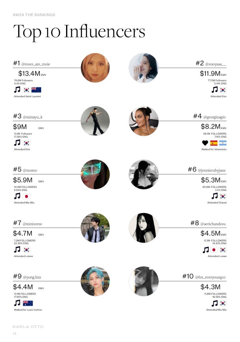 🧳 ตามรายงานของเว็บ Lefty คาริน่า อยู่อันดับ 2 ศิลปินที่ทรงอิทธิพลที่สุดในงาน MFW SS25 Womenswear 🍁 อีกทั้งยังครองอันดับ 1 ศิลปินหญิงที่มี