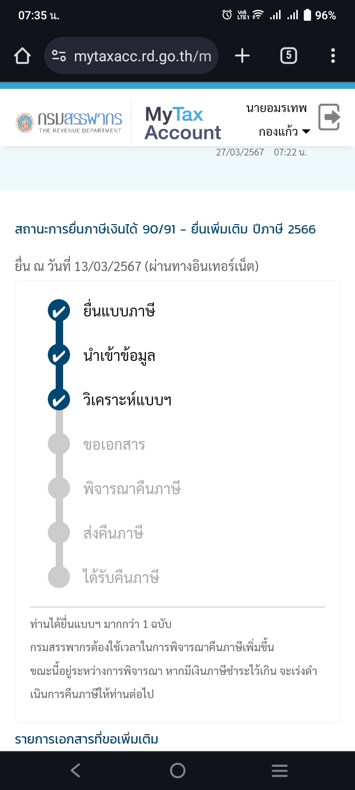 ขึ้นแบบนี้จะเดือนนึงแล้ว รอบแรกยื่นแบบผิดทางออนไลน์เลยไปยื่นที่สรรพกรใหม่