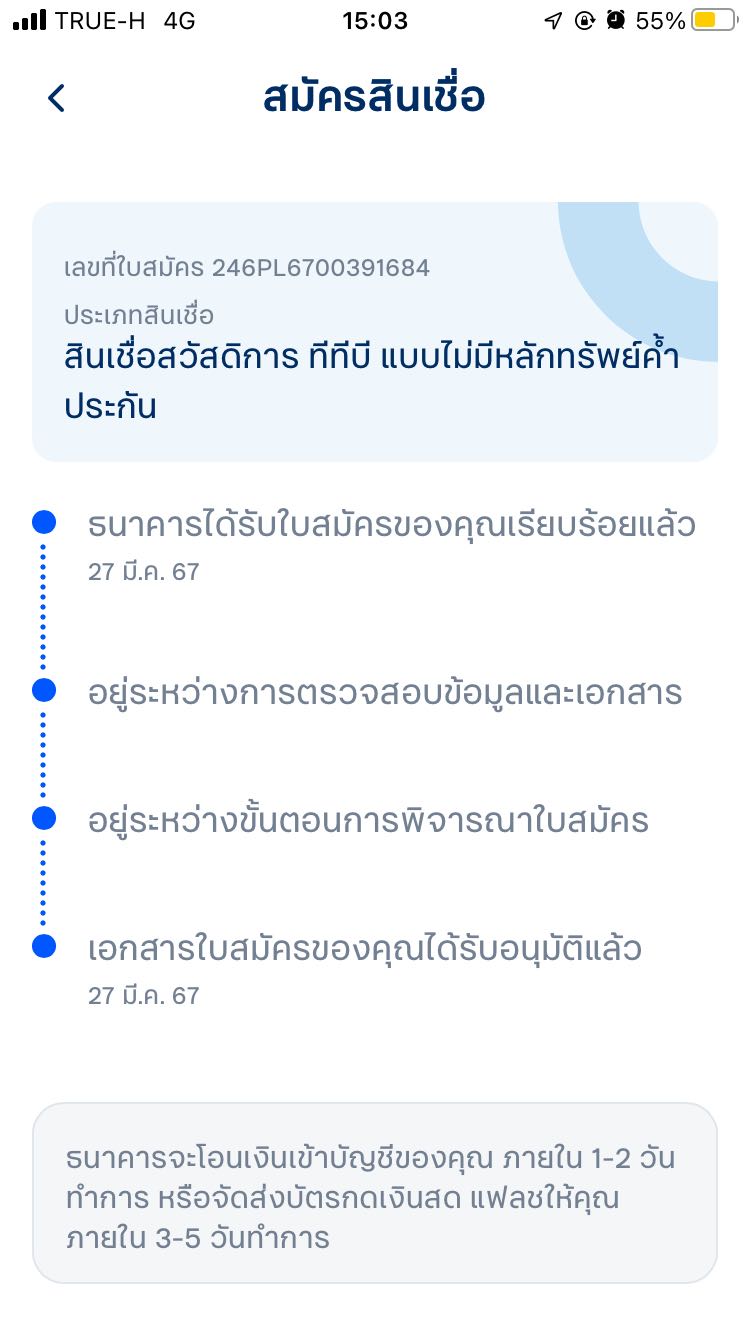 สินเชื่อ ทีทีบี แคชทูโก ขึ้นแบบนี้ผ่านไหม