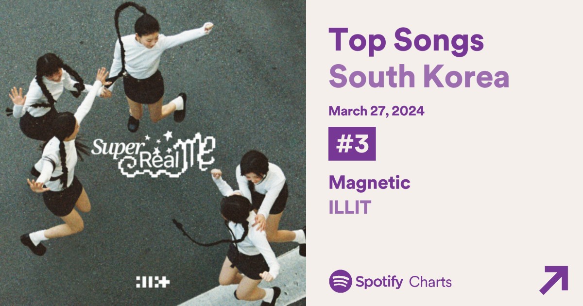 ILLIT (아일릿), Magnetic. ขึ้นอันดับเข้าสู่ top3 บนชาร์ต Spotify South Korea Daily ได้สำเร็จ!