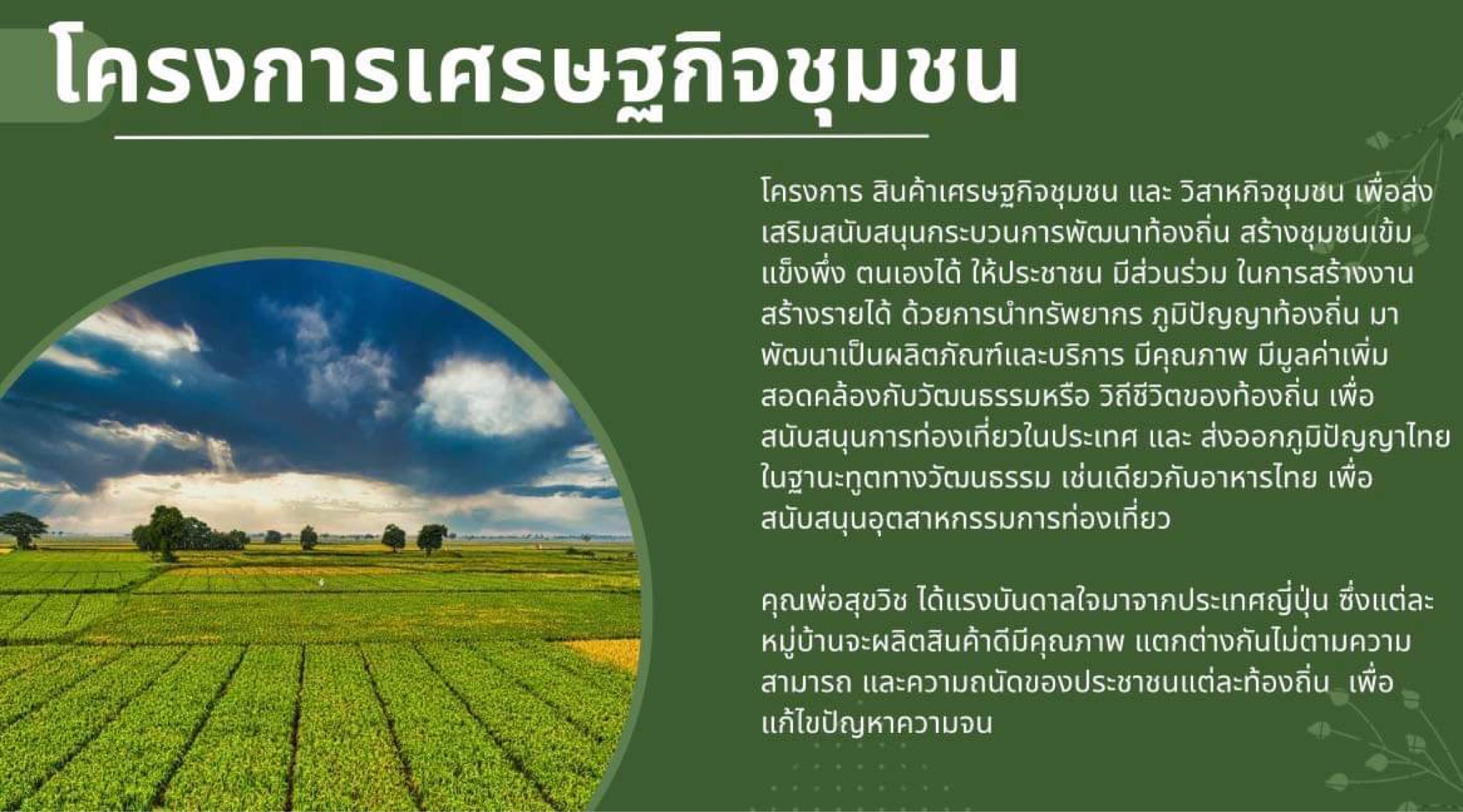 ChatGPT ตอบมาครับ ความจริงในประวัติศาสตร์ไทย: กำเนิดแนวคิด OTOP และ ต้นแบบยุคเศรษฐกิจชุมชน:สินค้าเศรษฐกิจชุมชน,วิสาหกิจชุมชนและอุตสาหกรรมชุมชน 1. ต้นแบบนโยบายจากแผนพัฒนาเศรษฐกิจและสังคมแห่งชาติ ฉบับ