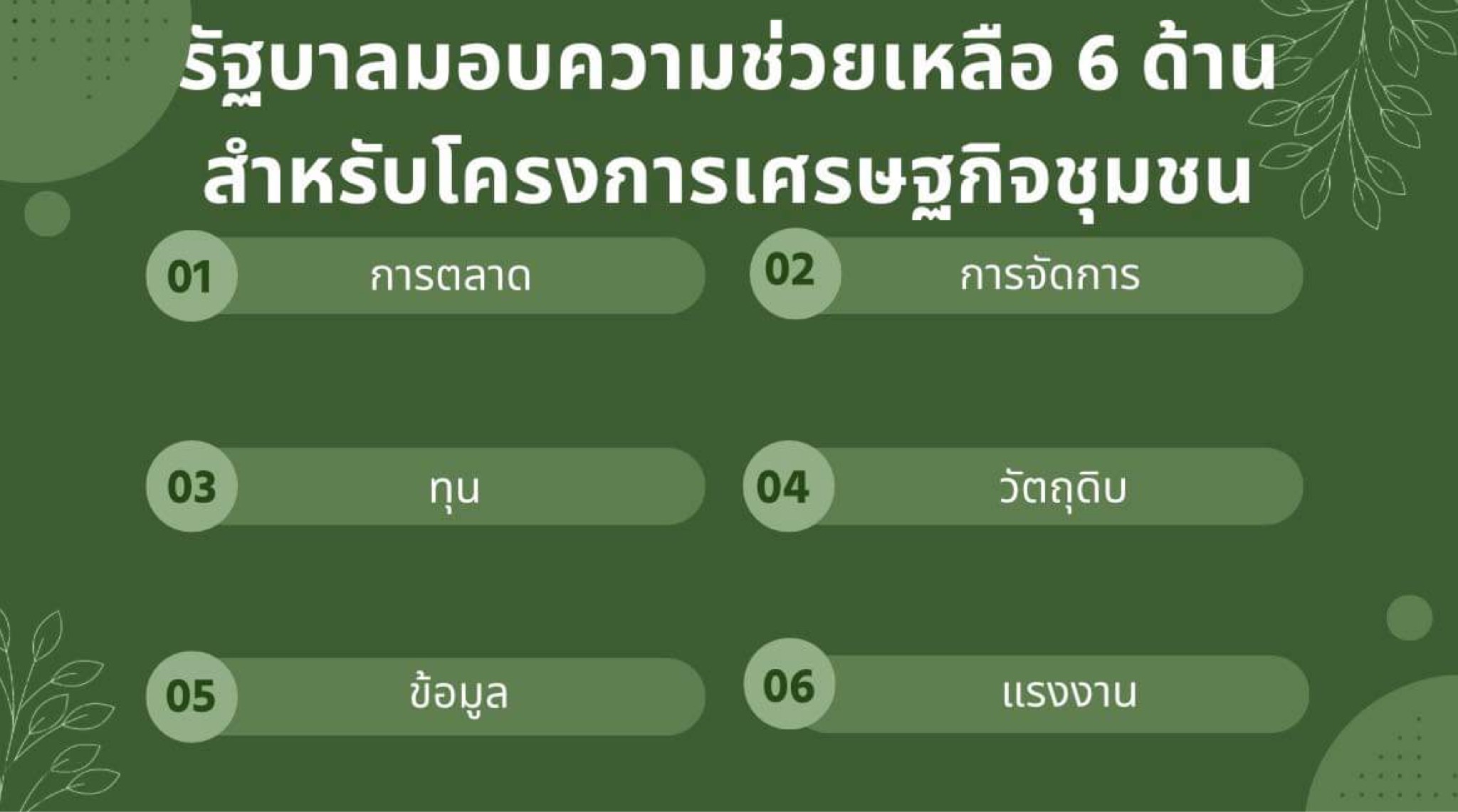 ข้อเสนอแนะเพื่ออนาคต 1. ฟื้นฟูยุทธศาสตร์เศรษฐกิจชุมชนแบบดั้งเดิม ส่งเสริมหลักการ พึ่งพาตนเอง การมี ส่วนร่วมของประชาชน และการ เติบโตจากภายใน โดยไม่พึ่งพาการแจกจ่ายจากรัฐเพ