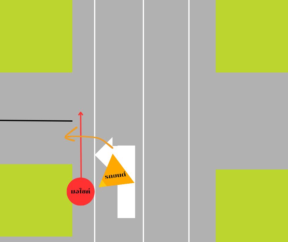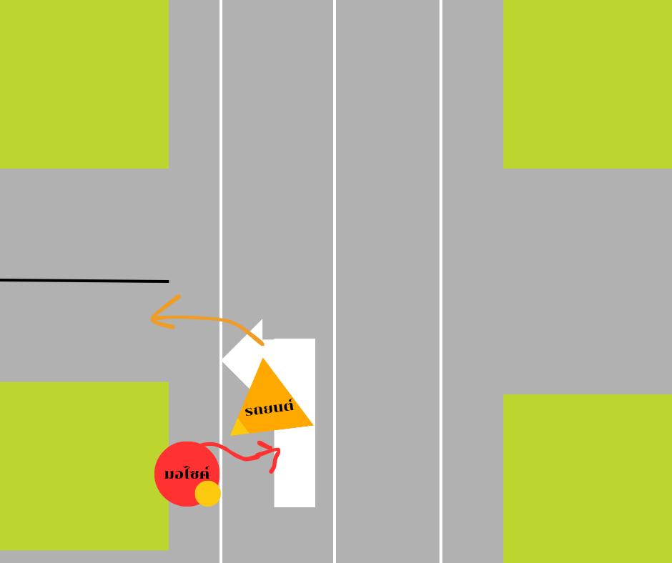 เริ่มจากที่เราออกบ้านไปทำงาน เส้นทางที่ใช้จะเป็นถนนใหญ่เลย แล้วอุบัติเหตุเกิดขึ้นที่ทางสี่แยก เราขับมอเตอร์ไซค์ เขาขับรถยนต์ เราอยู่เลนซ้ายมือสุด และเขาอยู่เลนขวามือเรา เขาขับมาด้านข้างไปด้านหน้านิดหน่อยและเปิดไฟเลี้ยวซ้ายและที่เราพอจะจำได้คือเหมือนเค้าใกล้จะโค้งเข้ามาทางซ้ายเเล้วเราเห็นก็ดูแล้วว่าเราเบรกไม่ทัน และรีบเปิดไฟเลี้ยวขวาเเล้วเบนรถเราไปทางเลนขวาเพื่อที่จะเบี่ยงหลบเขาเพราะถ้าเราไม่หลบก็จะชนด้านข้างเขาเลยเบี่ยงแต่มันใกล้ท้ายรถเค้ามากๆ เราจะชนเค้าอยู่ดีจึงกดแตรหลายๆครั้ง และเบรกมือขวา แบบเบรกปล่อยๆเบรกปล่อย แต่มันดันสบัดจนรถล้ม ทำให้ตัวเราและรถไถลไปอีกเลนนึงนิดหน่อย เพราะถ้าเราจะออกขวาให้พ้นไปเลยมันไม่ได้ค่ะมีรถมาทางขวาด้วย ด้วยเหตุนี้เราจึงได้แผลถลอกที่ข้อเท้าซ้าย และตรงข้างสะโพกระบมบวมช้ำมาค่ะ ส่วนรถมอเตอร์ไซค์นั้นมีรอยถลอกตามส่วนที่ไถลไปกับถนน (เสียใจอยู่นะเพราะพึ่งออกรถใหม่ตอนสิงหา 66รถยังไม่ถึงปีและยังผ่อนไม่หมดค้างอีก3ปีกว่าเลยT^T) เเละเค้าได้จอดรถลงมาดูเค้าได้ถามเราว่าบาดเจ็บตรงไหนหรือไม่ ไป รพ.หรือเปล่า เราได้ตอบเค้าไปว่าเราไม่เป็นไรมากมีแผลถลอกแต่รถมอไซต์เราถลอกและพึ่งออกมาได้ไม่นาน เขาบอกมาว่าเค้ารีบไปรับเพื่อนและจะไปประชุม ให้ทันเวลา 9โมงเช้า (เหตุเกิดเวลาประมาณ8.20น.นะคะ) เขาได้ถามเราว่าเราชนท้ายรถเขาหรือเปล่า เราบอกว่าไม่ได้ชนค่ะเพราะถ้าเราไม่เบรคคงจะชนท้ายอยู่เพราะมันกระชั้นชิเมาก ซึ่งเราได้บอกเขาว่าเพราะเราเห็นเขาค่อยๆเข้ามาทางซ้ายเราจึงเบี่ยงไปทางขวาเพราะเราจะเบรคไม่ทันตรงไปก็ชนอยู่ดี เขาก็เพิ่มระดับเสียงมานิดหน่อยว่าเขาไม่ได้เลี้ยวมาเลยนะอะไรประมาณนี้ เเละจากนั้นเขาได้ให้เงินมา 1,000 เราจำไม่ค่อยได้ว่าเขาให้เงินนี้มาค่าอะไรแต่ถ้าจำไม่ผิดน่าจะเป็นค่าหาหมอและค่าเสียหาย จำไม่ได้จริงๆ(แต่เรายังไม่ได้เรียกร้องหรือพูดเรื่องเงินกับเค้านะคะเค้าเดินไปหยิบมาให้เอง) เราเลยขอภ่ารูปรถและขอไลน์เขาไว้ และได้บอกเขาว่า เราขออนุญาตรับเงินส่วนนี้เอาไว้ก่อนเเละจะนำรถไปให้ช่างประเมินค่าเสียหายและจะแจ้งเข้าไปในไลน์