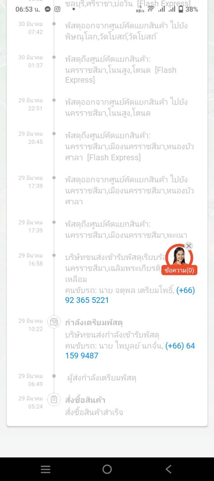 ส่งของตั้งแต่วันที่ 29 ขนส่งแฟกซ์ตอนนี้ของยังไม่ถึงเลยติดต่อขนส่งไม่ได้เลย