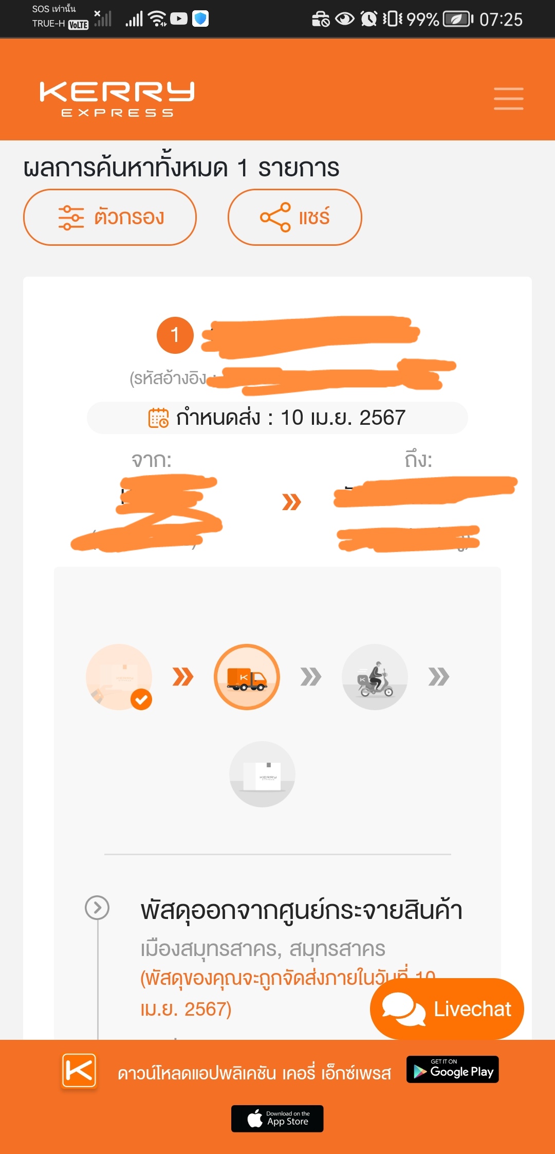 ส่งของมาจังหวัดสมุทรปราการอย่าหาใช้บริการขนส่งkerry🤬 คือที่บ้านส่งผลไม้มาให้เรา ต้นทางกระบี่ ปลายทางสมุทรปราการ ตั้งแต่วันที่19 (ปล.ที่ขนส่งต้นทางบอกวันเดียวถึง คือวันที่20) วันที่20ยังไม่ได้ อะรอ 21ย
