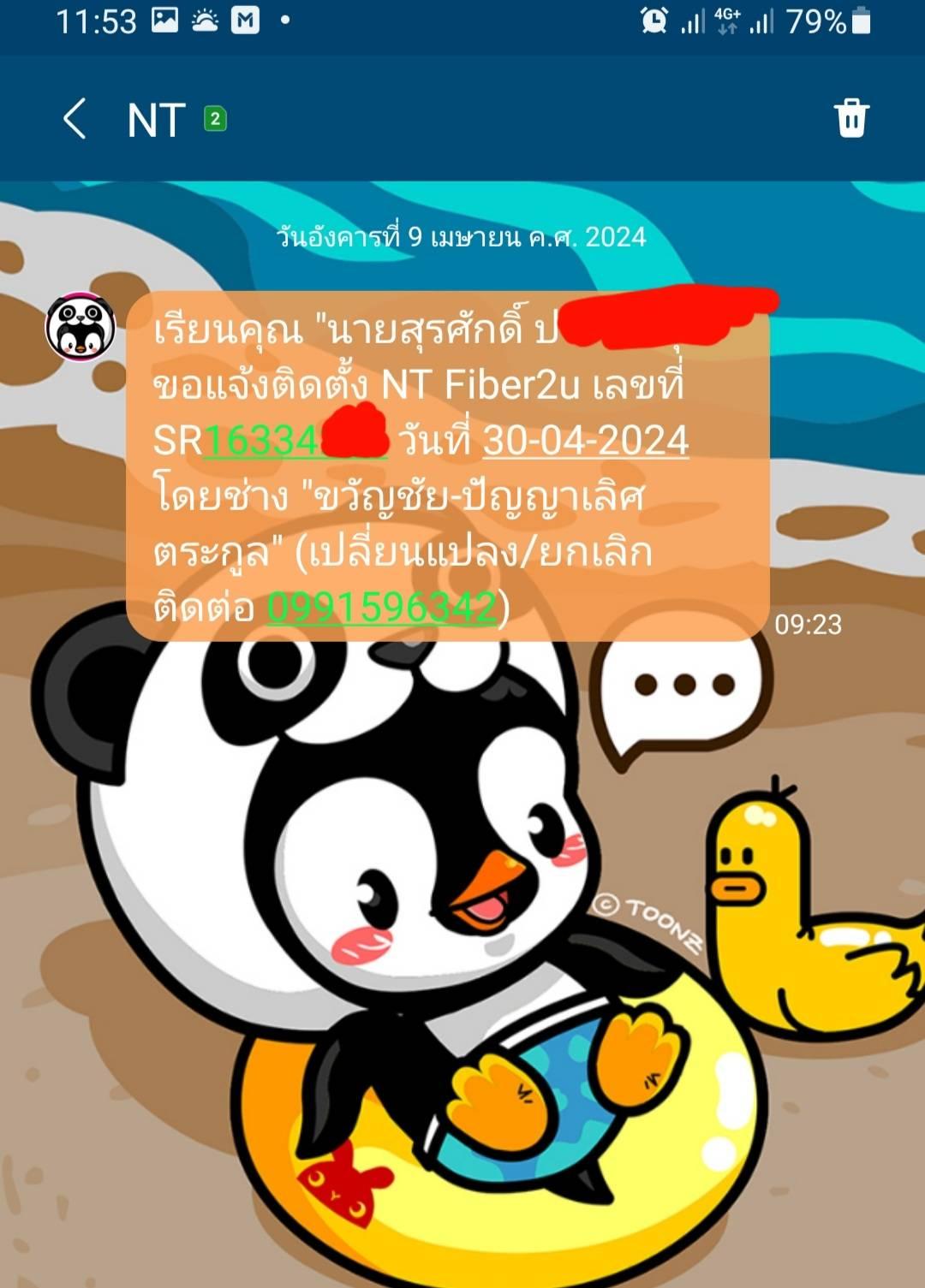 หลังจากคุยกับเจ้าหน้าที่เสร็จ ผมก็ลองโทรไปตามเบอร์ในข้อความ 099 ถามว่า ใช่ช่างตามชื่อในข้อความไหม ทำไมถึงจะมาติดตั้งให้ผม ตั้งวันที่ 30 ?