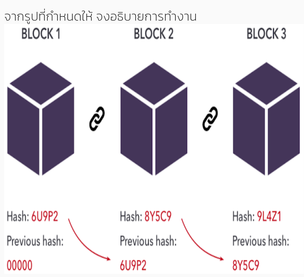 รบกวนผู้รู้ช่วยอธิบายหลักการทำงานของBlockchainตามรูปให้หน่อยครับคือผมไม่เข้าใจโจทย์ ขอบคุณล่วงหน้าครับ