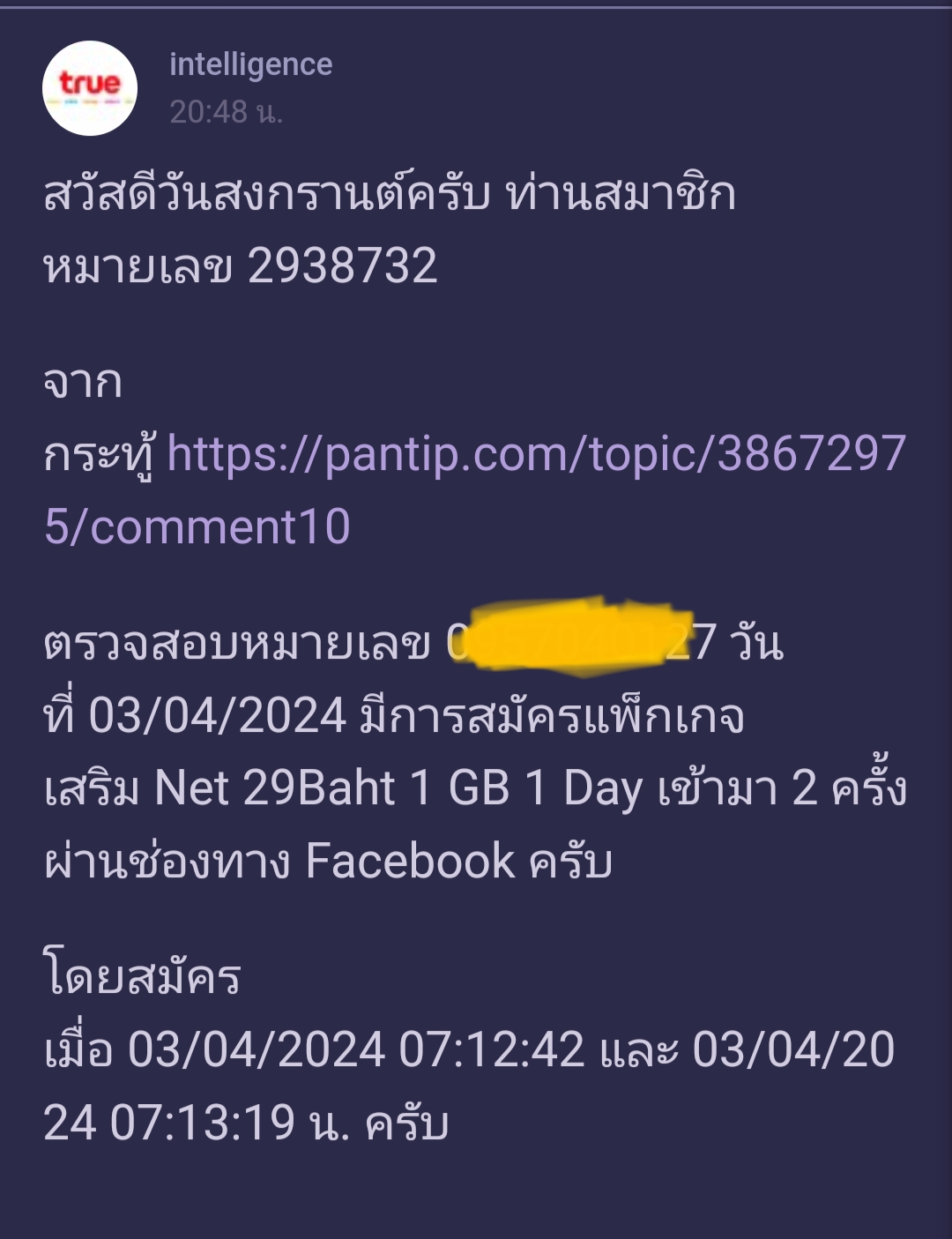 สงสัยว่าแพคเกจเสริมทรูนี่มันสมัครผ่านเฟสบุ๊คเองอัตโนมัติ ได้ด้วยหรอ มีใครเคยเจอบ้างคะ อยากทราบรายละเอียดค่ะ