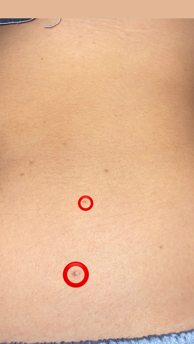 พอดีสงสัยว่ามันคืออะไรกังวลว่าจะเป็นอย่างอื่นค่ะ เคยเป็นแบบนี้รอบนึงสีมันจะเป็นจุกดำๆอ่ะค่ะที่วงไว้พอมันเป็นมันก็เป็นสักพักแล้วก็หายไปแต่มันมีเป็รอยไว้
