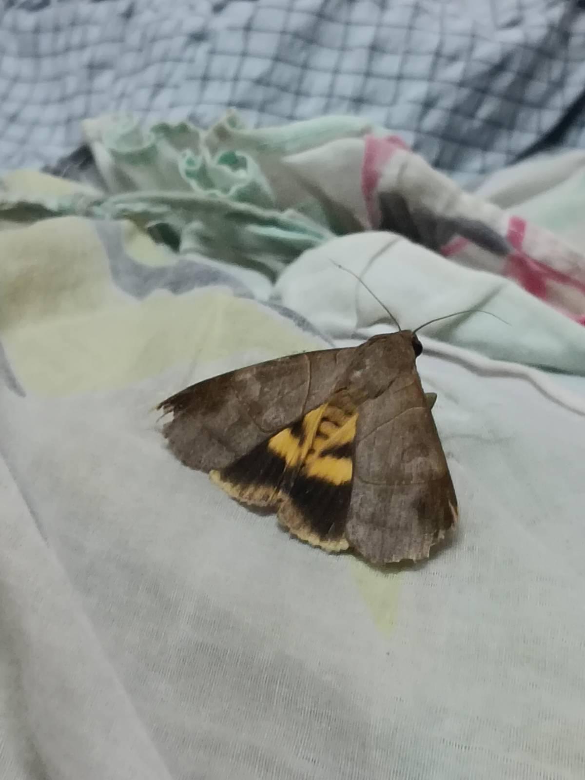 ถ้าลงลึกระบุสายพันธุ์ คือ มอธหนอนกระทู้ปีกหลังเหลืองดำ (Thyas coronata)