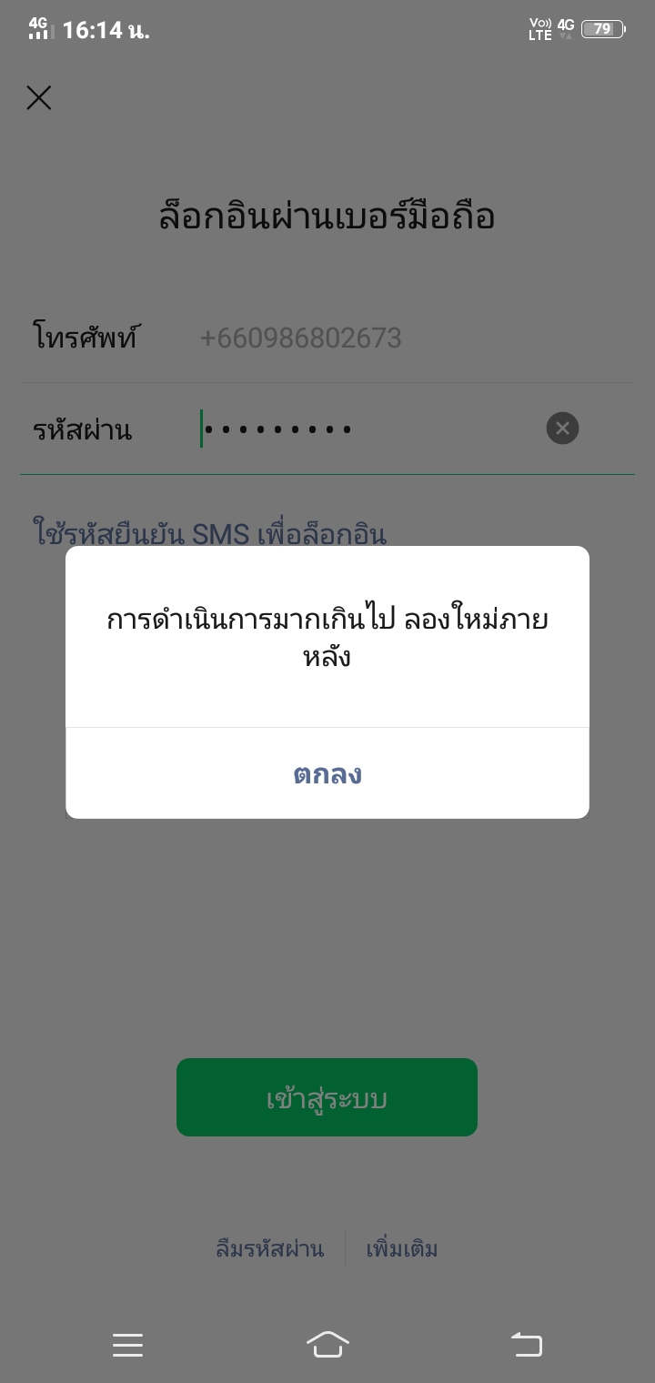 จะล็อคอินเข้าบัญชีในแอป pea smart plus แต่ใช้เบอร์เดิมเข้าไม่ได้