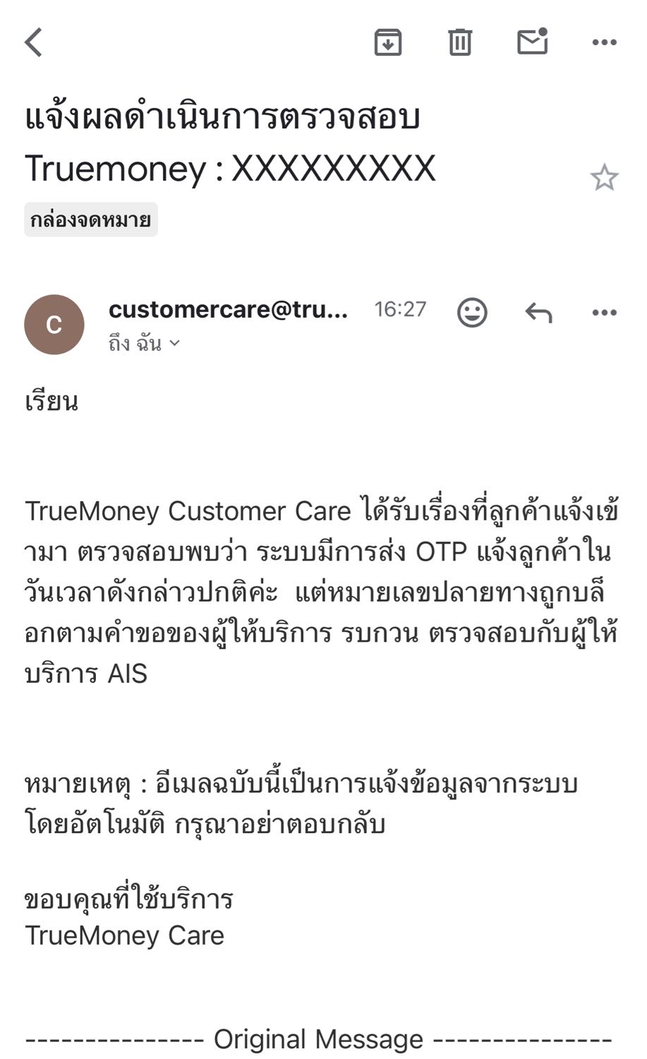 ติดต่อทาง AIS ก็โทษ ทาง True ครับ