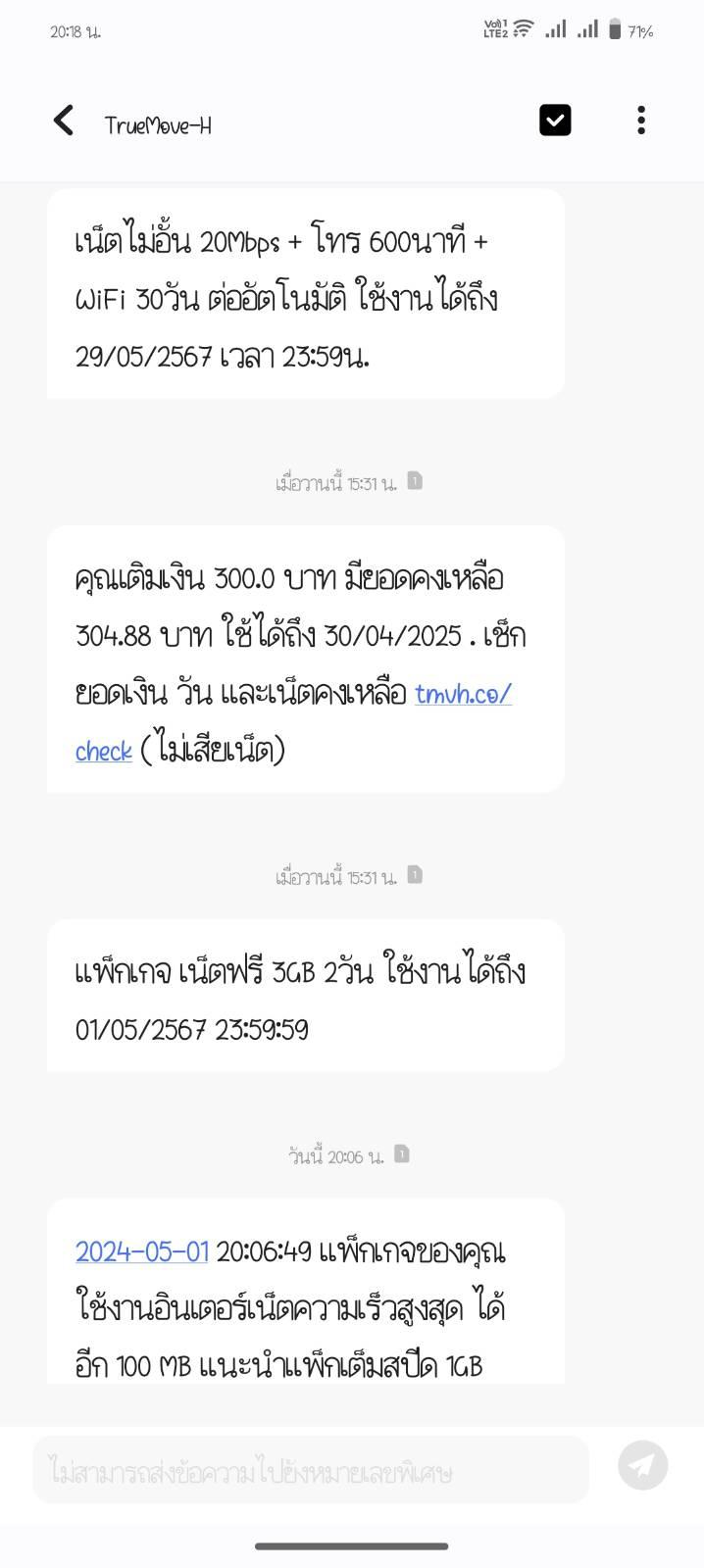 truemove h รายเดือน แต่ละเดือนไม่เท่ากัน